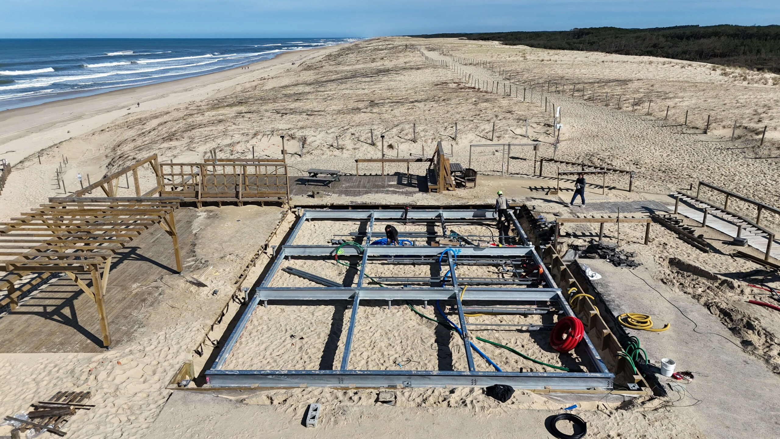 Techno Pieux Landes a apporté son expertise en 2023 et 2024 pour installer des fondations pour un nouveau restaurant de plage à Messanges (Landes, 40). Ce projet, unique en son genre, a été réalisé en deux phases, illustrant la flexibilité et le respect environnemental des solutions de fondation Techno Pieux.