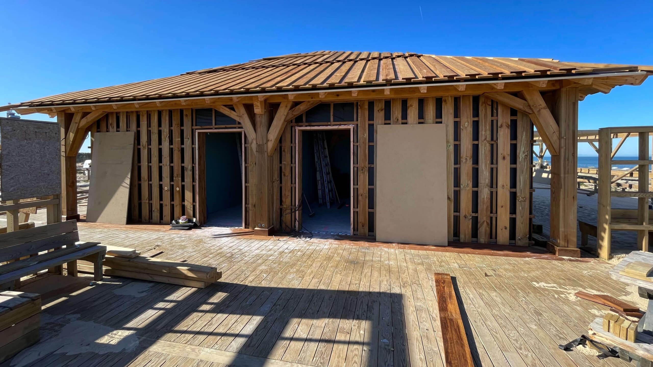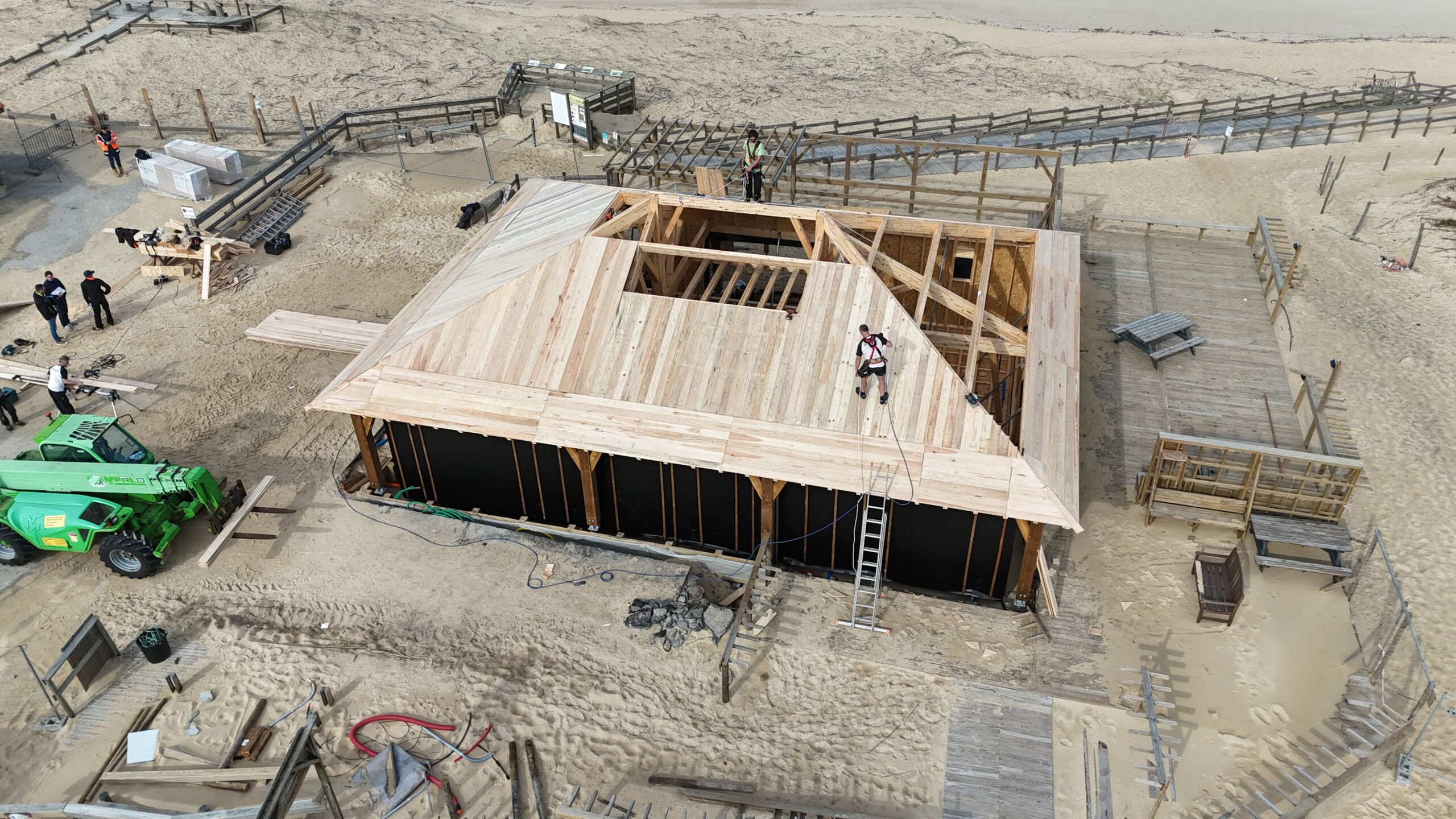 Le nouveau restaurant, entièrement démontable, s'adapte à l'évolution naturelle du cordon dunaire. Il est conçu pour être entièrement déplacé dans le futur pour suivre l’érosion côtière. Les fondations Techno Pieux, ne nécessitant ni béton ni eau, permettent une intervention propre et réversible, garantissant la protection de l'environnement côtier.