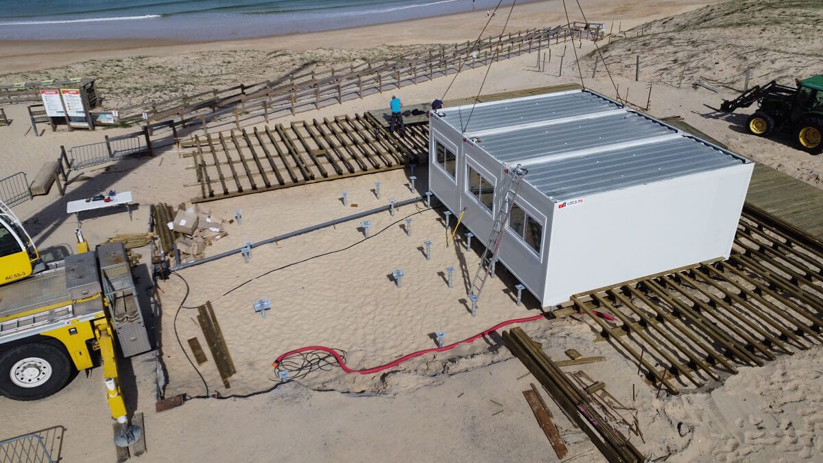 Suite à un incendie en hiver 2023, Techno Pieux Landes a été sollicité pour mettre en place des fondations temporaires destinées à accueillir des bâtiments modulaires pour la saison estivale. Les fondations vissées Techno Pieux ont été retenues pour plusieurs raisons :