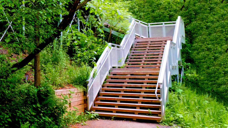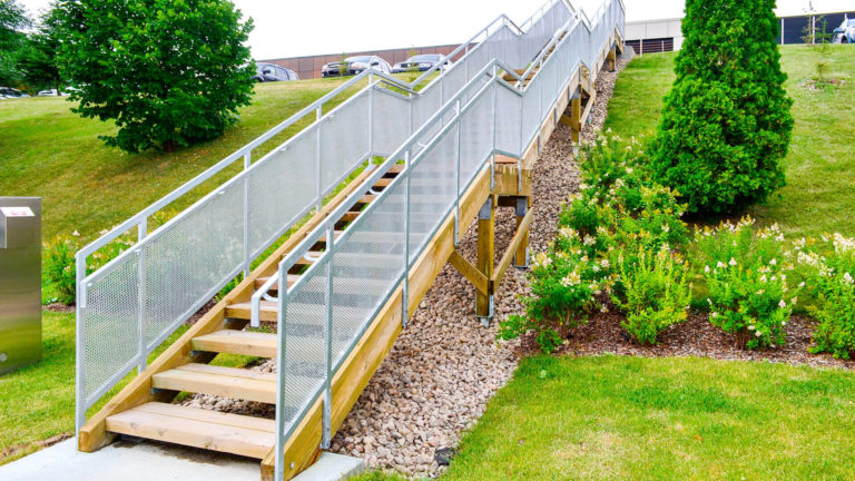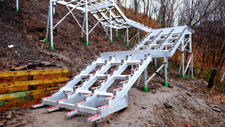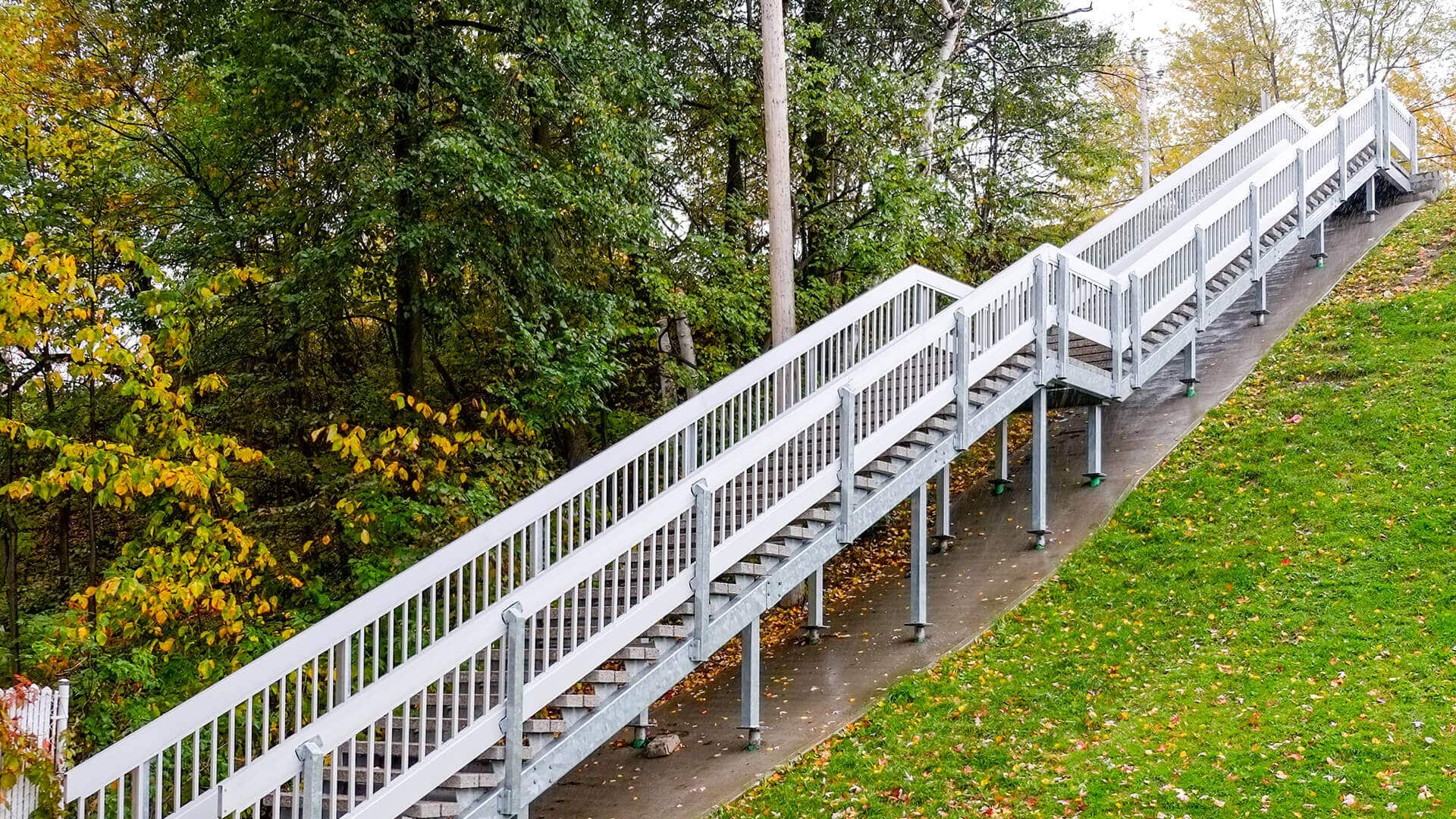 Afin d'assurer la stabilité d'un escalier, que l'ossature soit en bois ou en acier, le choix d'une fondation durable est primordial. De plus, l’utilisation de pieux vissés remédie à la problématique d’installation des fondations sur un terrain en pente. Cette solution permet d’offrir une économie drastique sur les coûts et délais d’opération.
