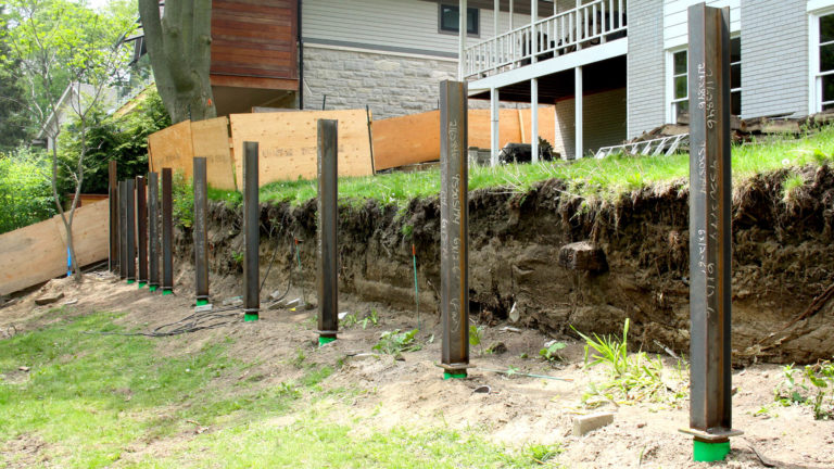 Pour supporter des charges latérales plus grandes, les pieux peuvent être vissés à angle. Cela permet de s’assurer de la stabilité du mur malgré les fortes contraintes.