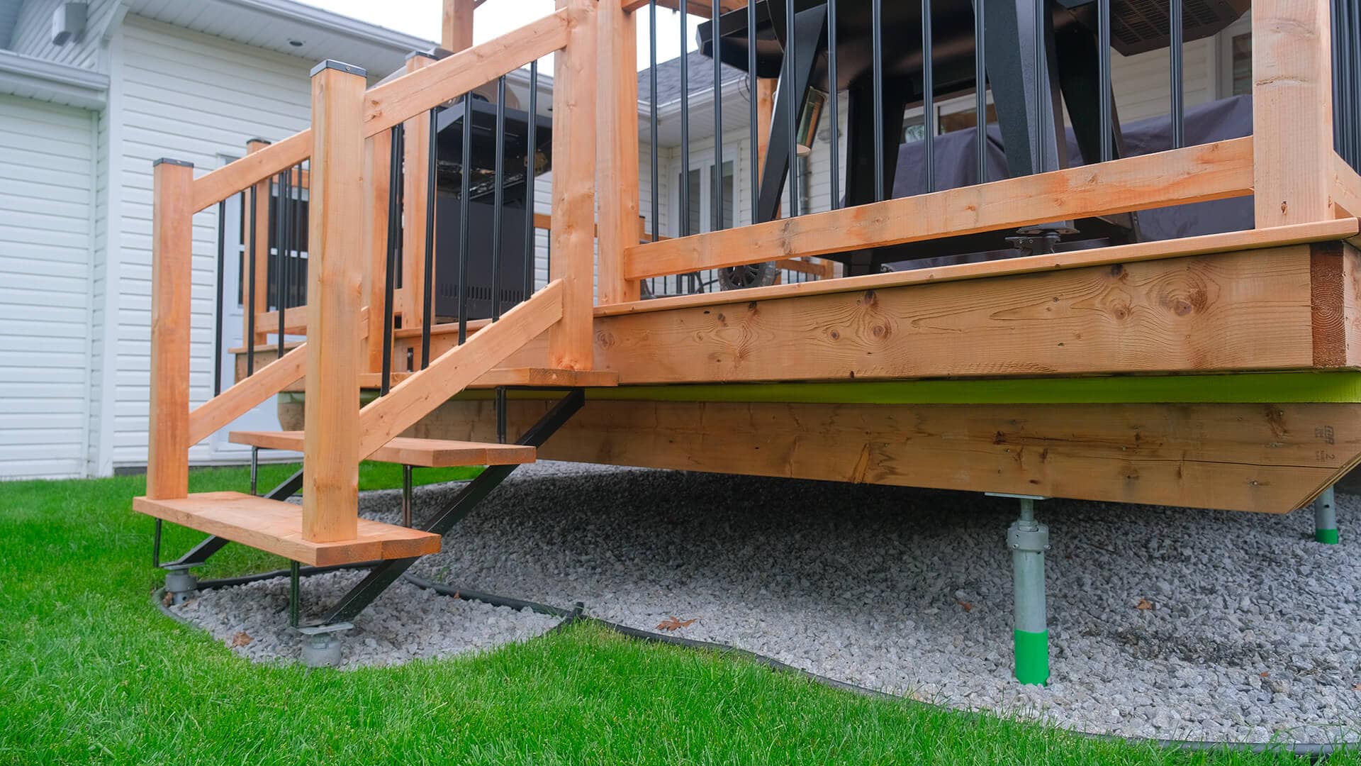 Il est important de maintenir une distance minimale de 6 pouces entre le sol et la structure et de s’assurer que les plaques de support ne soient pas enterrées. De cette façon, votre structure sera préservée des mouvements du sol dus aux changements de température ou de l’humidité retenue dans le sol.