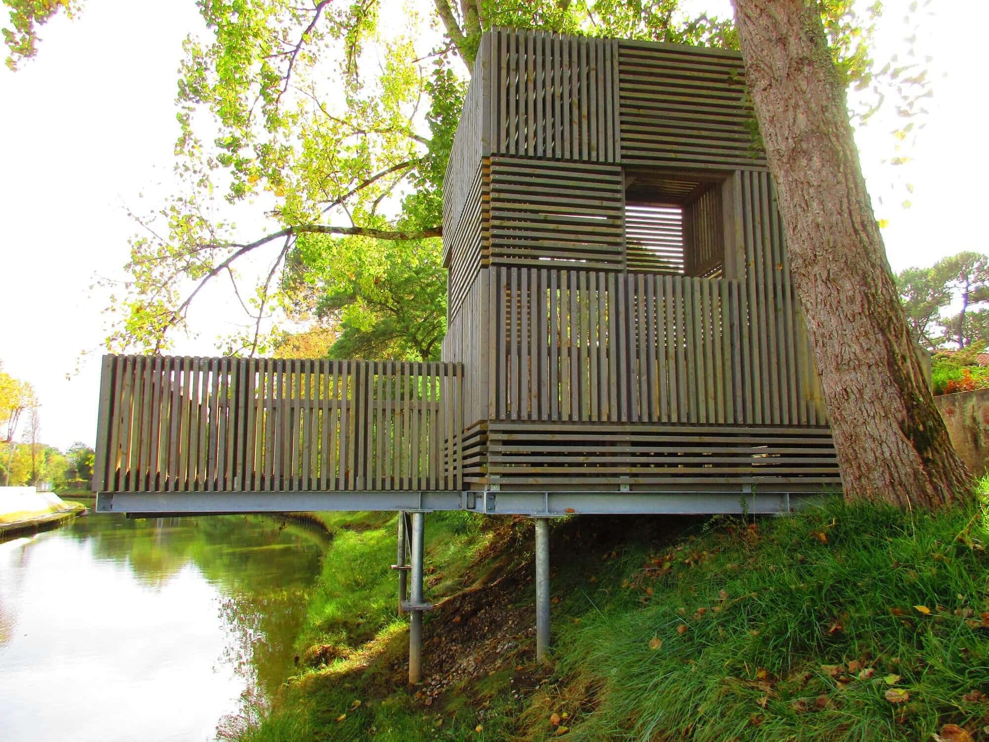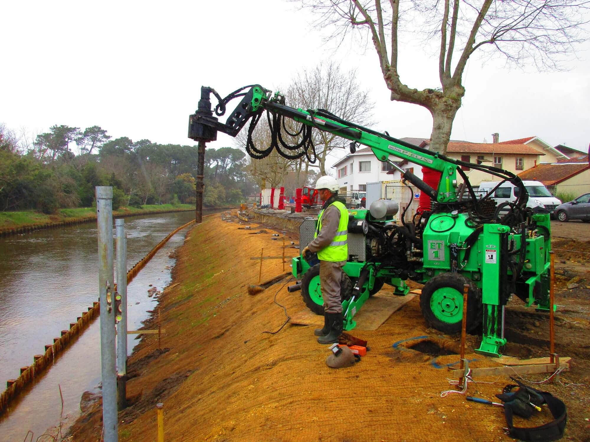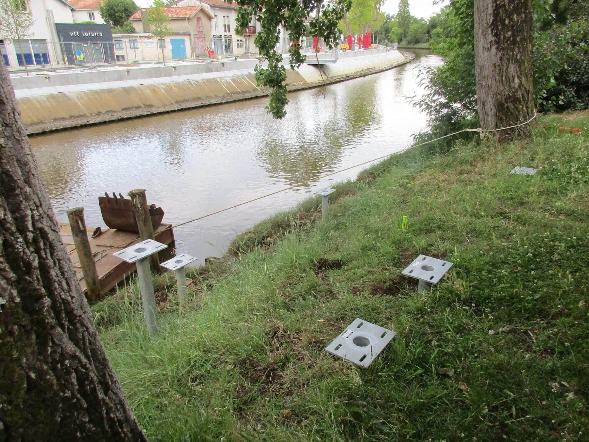 Aménagement urbain des Allées Marines du centre ville de Capbreton, le long de la rivière “Le Boudigau” avec la mise en place de Techno Pieux pour soutenir différents ouvrages :
