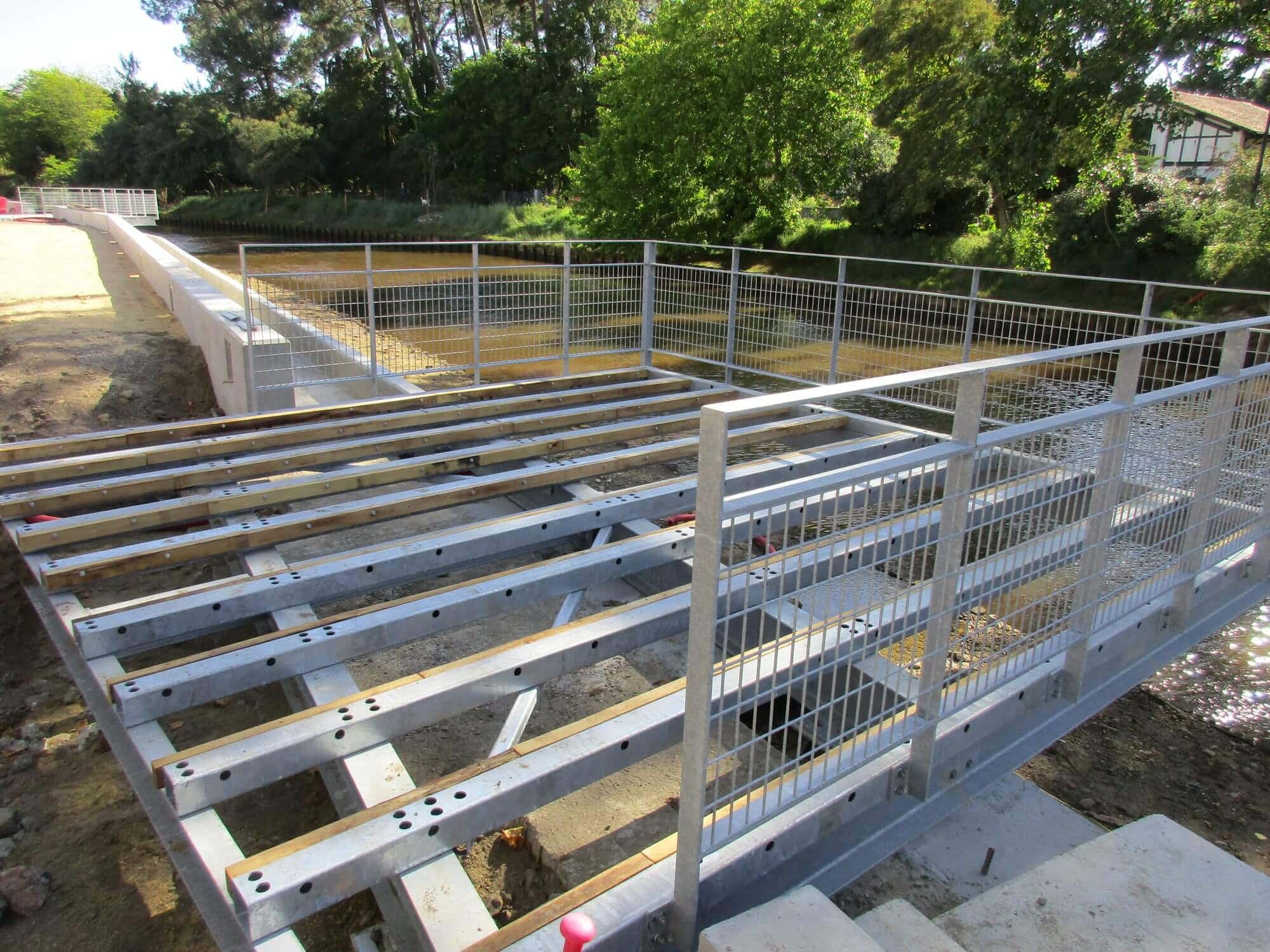 Détails de la structure reposant sur les pieux : Ossature métallique et platelage bois.
