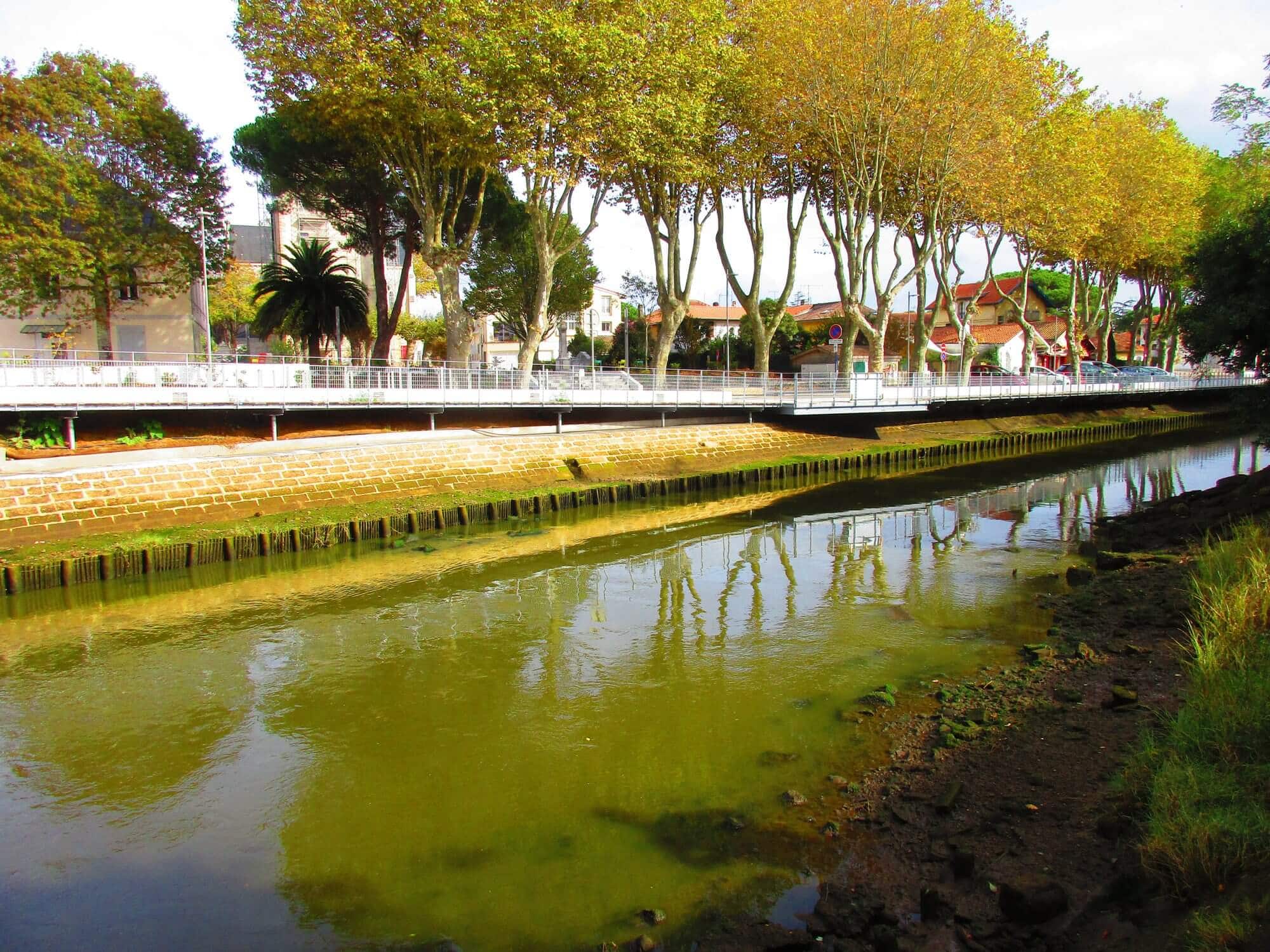 Adresse de localisation : Allées Marines et Centre ville de Capbreton (40), le long de la rivière canalisée du Boudigau