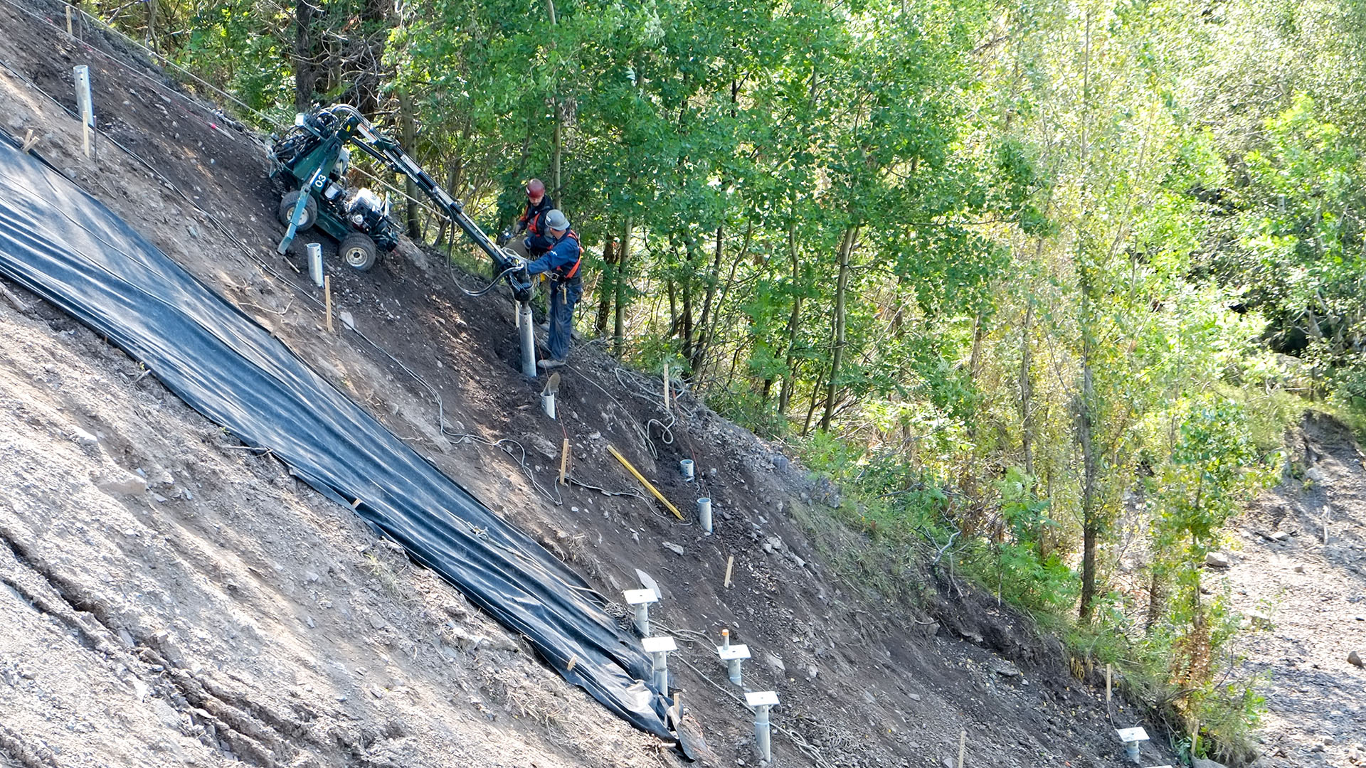 Avantages sur les autres méthodes : Installation rapide, équipements compacts, absence de déblais dans la pente, et coût inférieur comparativement aux autres méthodes
