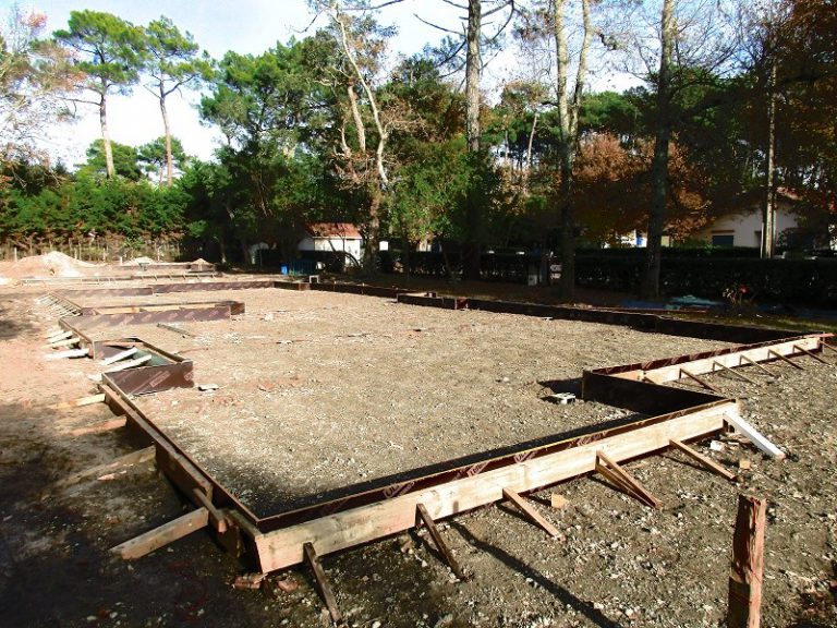 Détails sur la structure reposant sur les pieux : Ouvrages en ossature bois sur dalle béton posée sur les Techno Pieux.