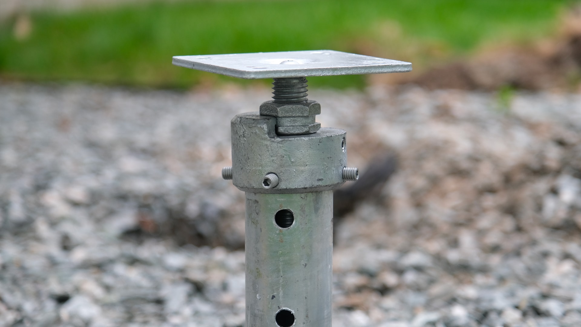 L’utilisation de la plaque de support ajustable doit être évitée pour les structures autoportantes et les structures avec toit (carport, pergola, etc.) compte tenu de la présence de charges latérales et en tension plus importantes.