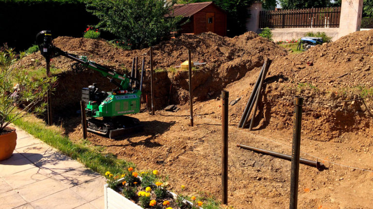 Les équipements d’installation Techno Pieux sont créés afin de pouvoir circuler dans les endroits les plus étroits. Il est donc facile de procéder à la mise en place des pieux à proximité des piscines ou près des patios déjà existants sans rien abîmer.