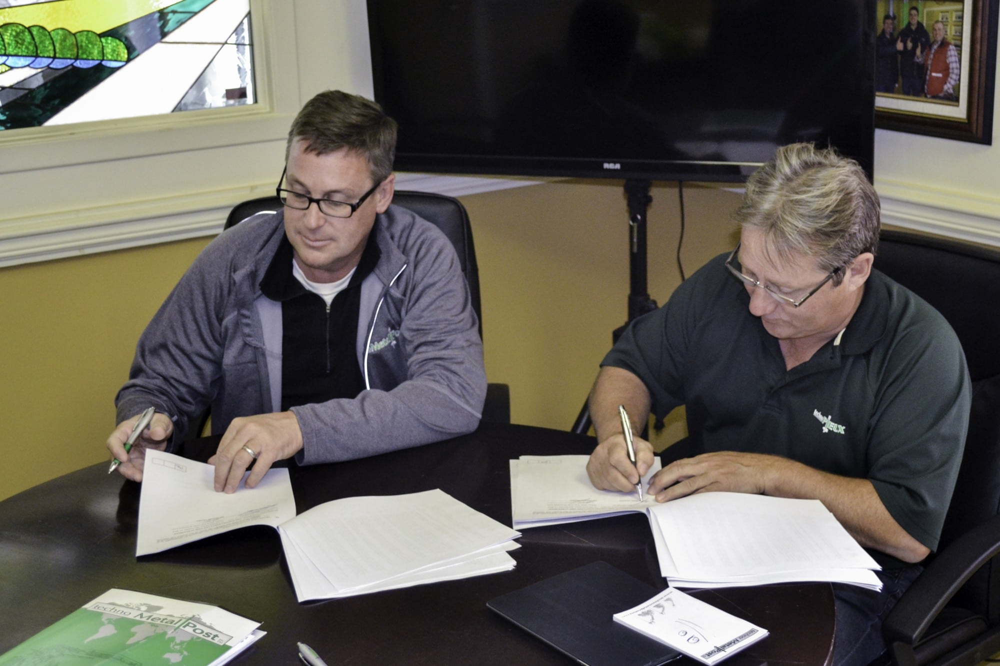 Photo : Joe Orendorf, propriétaire de Techno Metal Post SE Wisconsin, LLC et Clément Binet, propriétaire de Techno Pieux