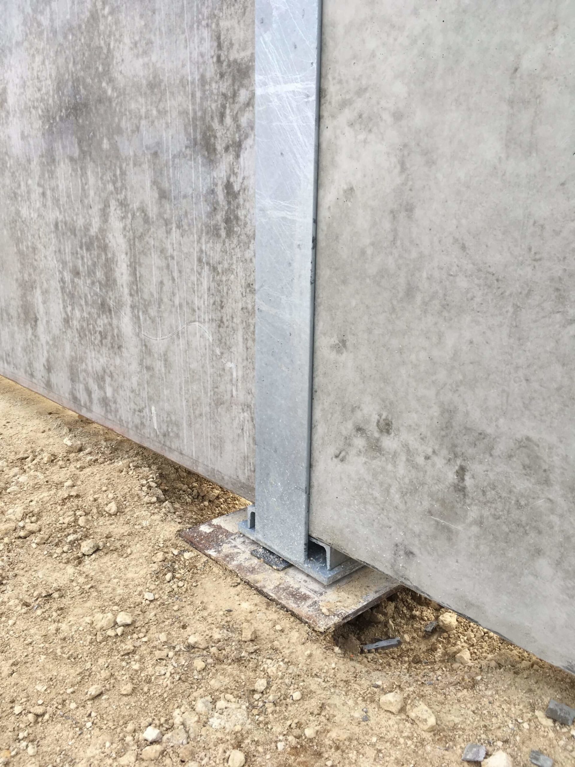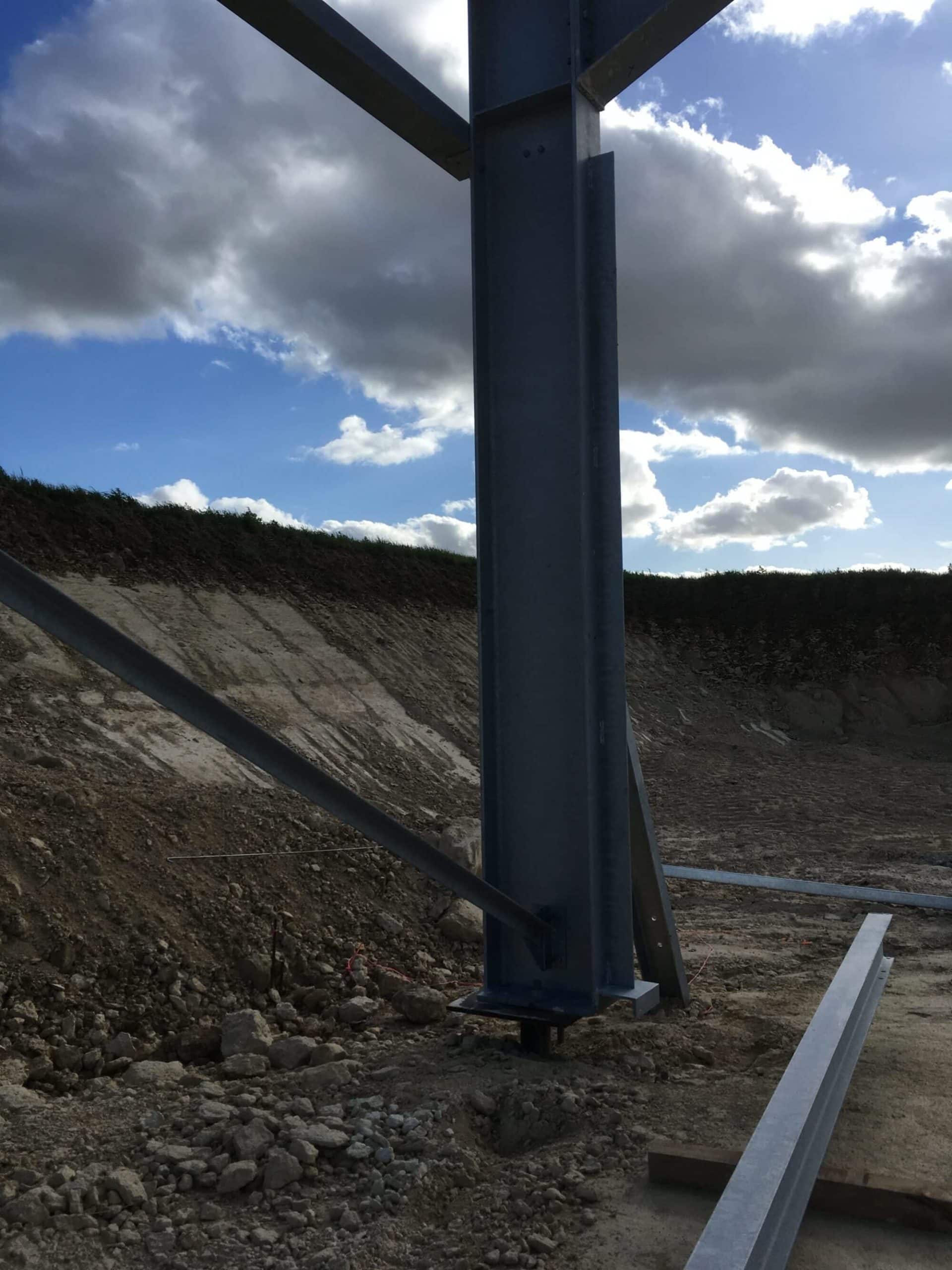 Détails de la structure reposant sur les pieux : Le pied de poteau vient se boulonner sur la platine du pieu