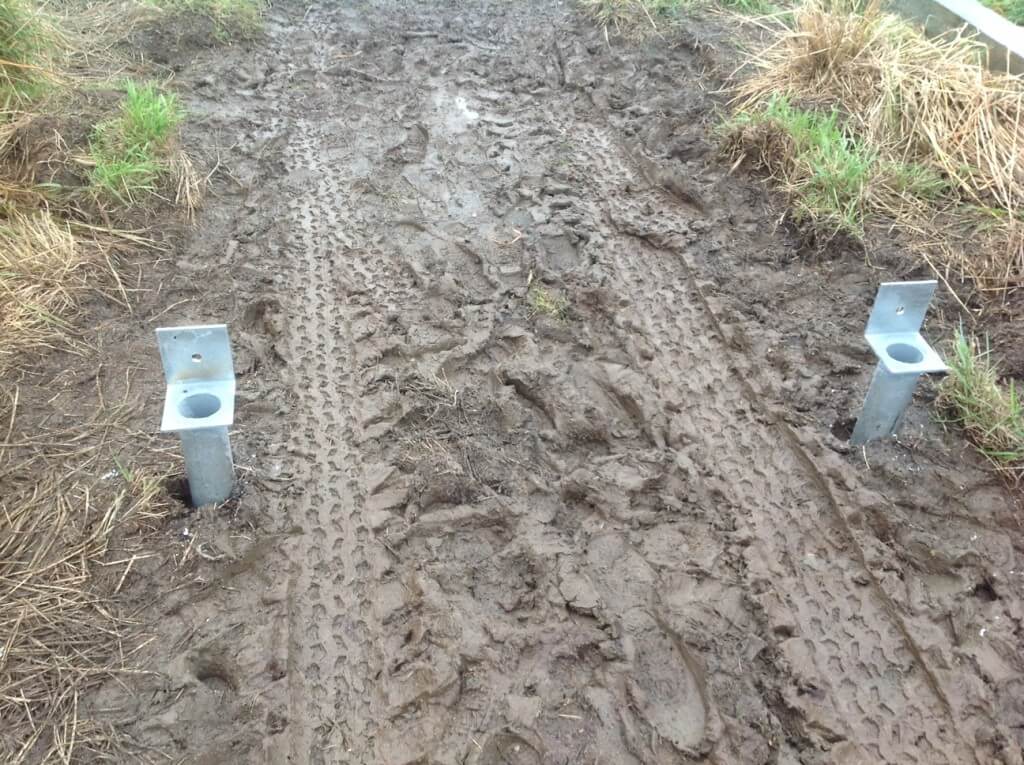 La passerelle existante fût retirée et notre route arpentée par un sous-contractant. Des marqueurs de hauteur furent installés chaque 48’, excepté lors de virage. Avec ces marqueurs en place, nous pouvions débuter l'installation.