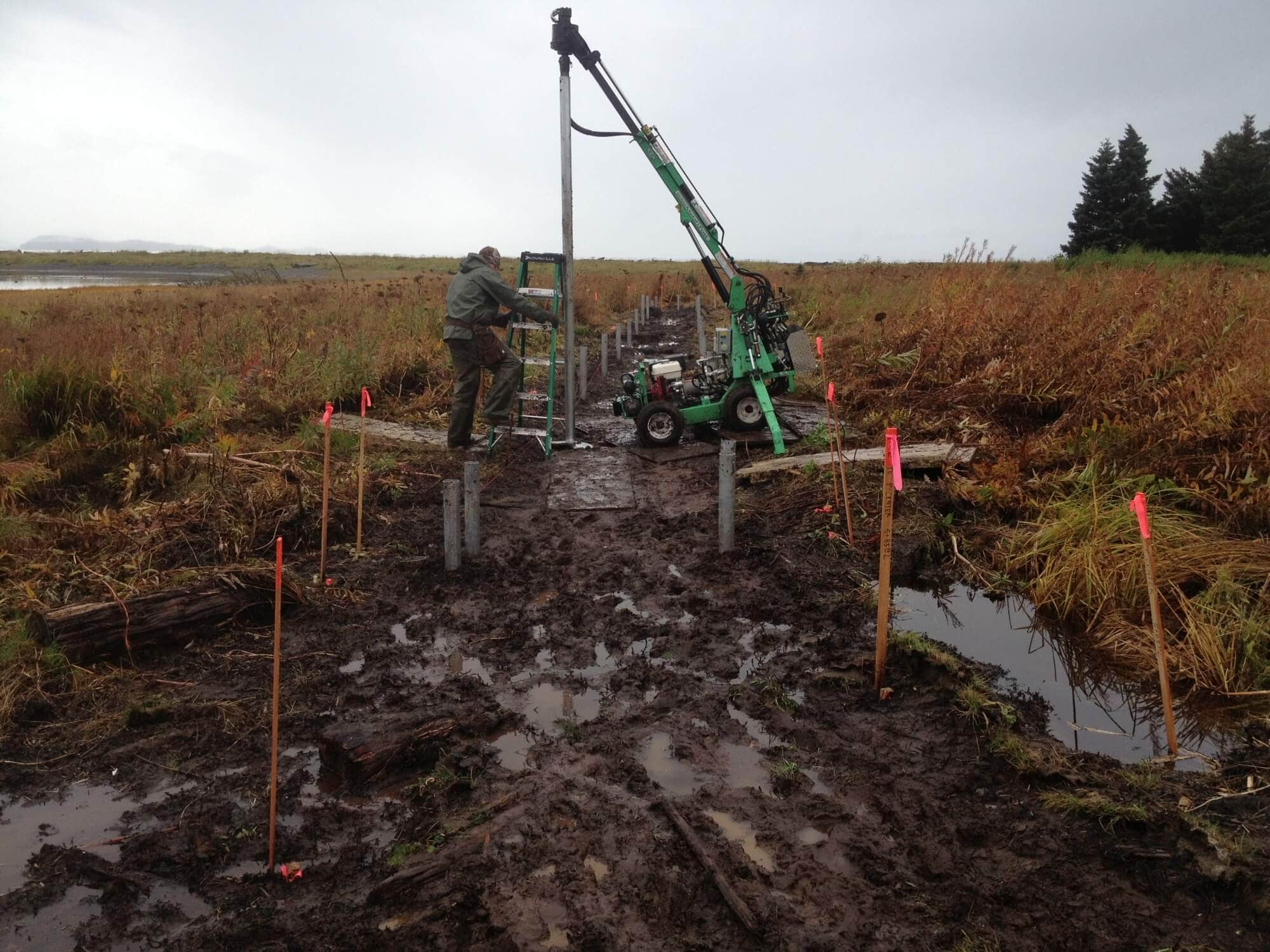 Techno Metal Post Alaska s'est vu octroyer le contrat de remplacer les fondations d'une passerelle d'environ 1000’ (330 mètres) en zone marécageuse dans la municipalité d'Homer. Ce projet a nécessité la livraison et l'installation de 200 pieux.