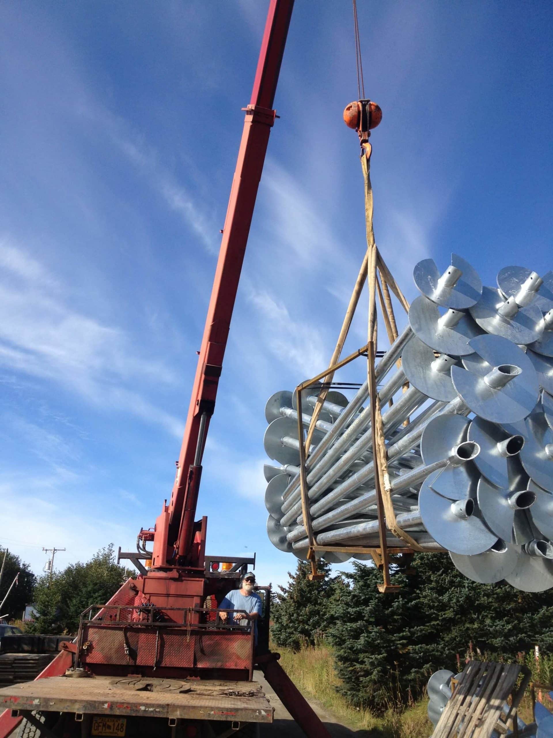Avant l’octroi du contrat, nous avons préalablement procédé à des tests d'installations en partenariat avec la municipalité d’Homer, auxquels ont assisté nos représentants techniques du Québec. Grâce à ces tests, nous avons appris que le sol faisait en sorte que les pieux de 7' avec hélice standard spécifiés dans le devis ne pouvaient pas supporter les charges demandées par la firme d'ingénierie. En analysant les résultats des tests effectués, les ingénieurs de Techno Metal Post proposèrent alors une solution de pieux vissés avec une hélice plus large. Cette solution permet ainsi de répondre plus adéquatement aux conditions de sol pour ce projet.