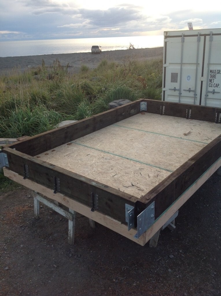 Suite à l'installation des 200 pieux, nous avons mesuré et coupé les pieux à la bonne hauteur. Tout ce travail a été fait et complété par Techno Metal Post Alaska.