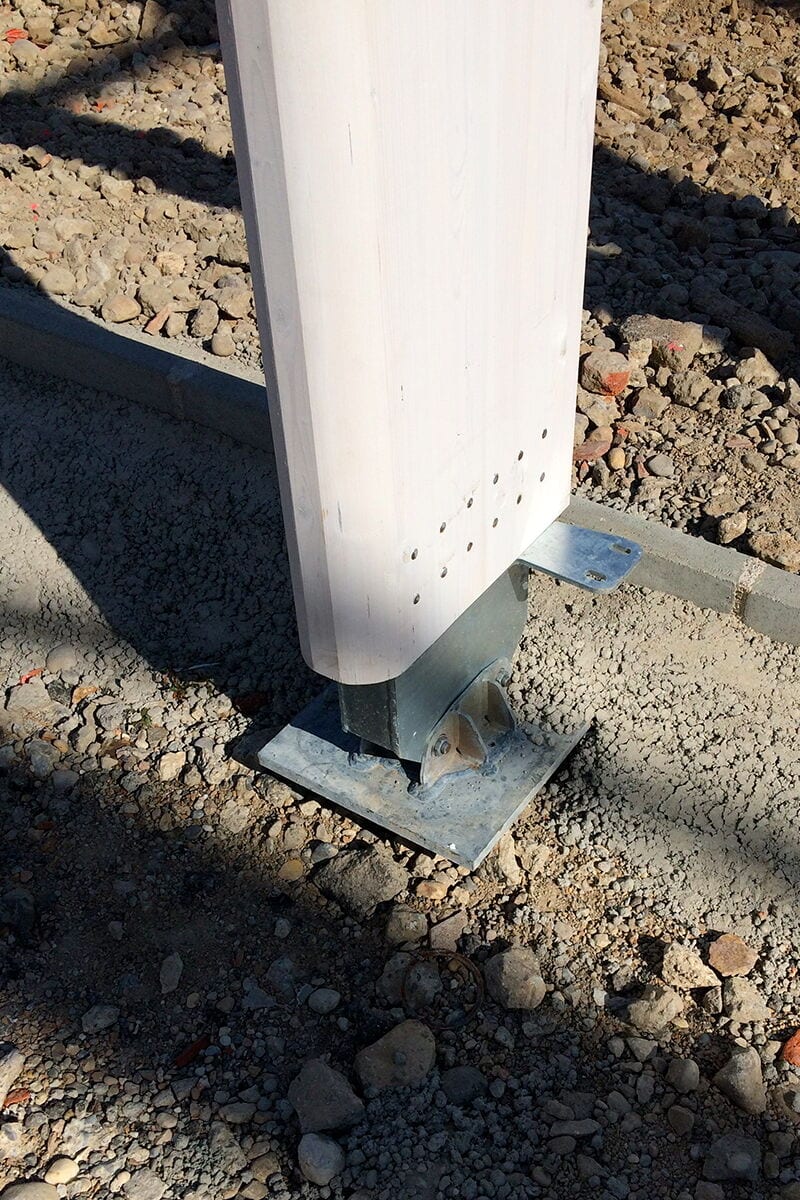 Techno Metal Post est capable de reprendre les charges de votre halle sportive point d'appui par point d'appui avec un terrassement limité ou inexistant. Point appréciable, les pieds de poteaux se fixent directement sur nos platines en têtes de Techno Metal Post sans éléments intermédiaires.