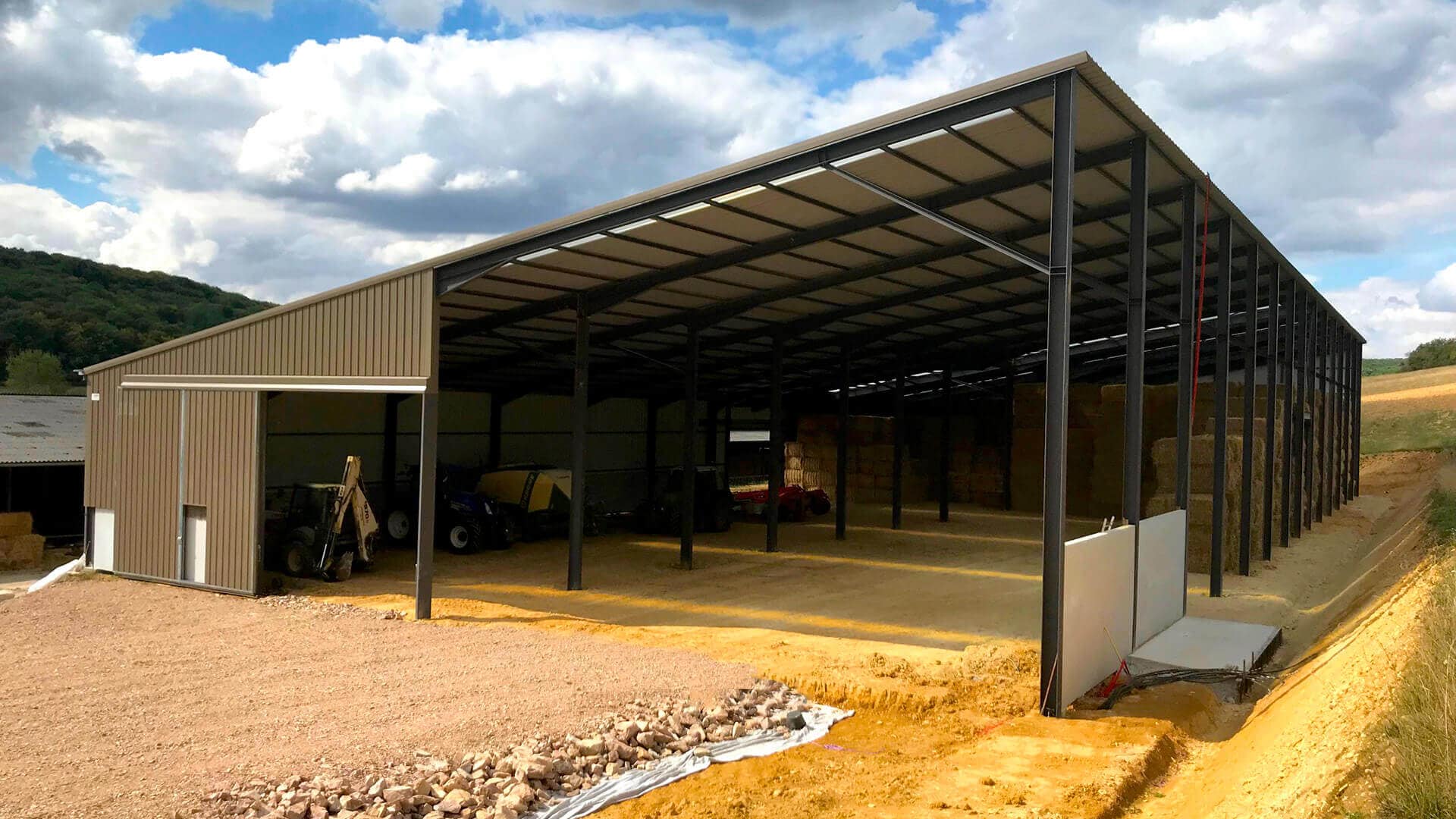 Techno Metal Post est capable de reprendre les charges de votre hangar point d'appui par point d'appui avec un terrassement limité ou inexistant. Point appréciable, les pieds de poteaux se fixent directement sur nos platines en têtes de Techno Metal Post sans éléments intermédiaires.