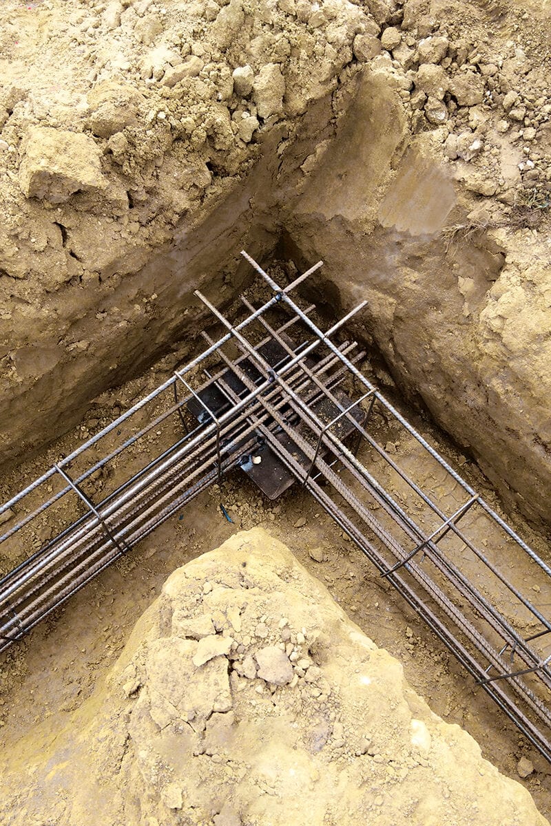 Les Techno Metal Posts sont installés en sous-oeuvre pour reprendre les efforts de la longrine. Le positionnement de chaque pieu est défini par le service d’ingénierie en fonction des descentes de charge. Le vissage du pieu dans le sol sera fait jusqu’à l’obtention de la capacité portante déterminée. Le ferraillage sera attaché à la platine de support soudée sur le pieu. Le béton pourra ensuite être coulé normalement.