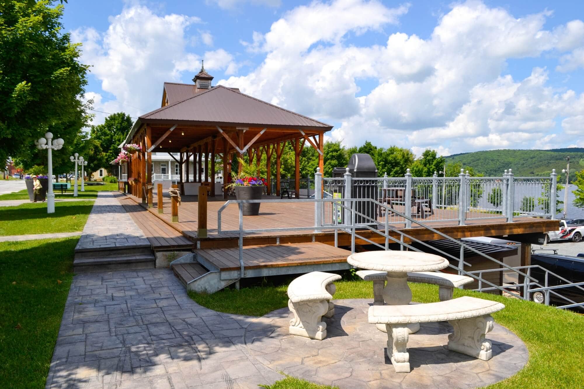 C'est dans la municipalité de Saint-Ferdinand au Québec, que nous pouvons observer un excellent exemple de valorisation d'un secteur. En effet, la technologie Techno Pieux a permis d’ériger une immense passerelle, dans une pente abrupte près du Lac William. Cette dernière offre à la municipalité, un lieu de rassemblement pour diverses activités (Marché Public, Festival, etc.). Cette réalisation est supportée par 28 Techno Pieux situés à une profondeur de 2,29 m (7' 6") sous le niveau du sol.
