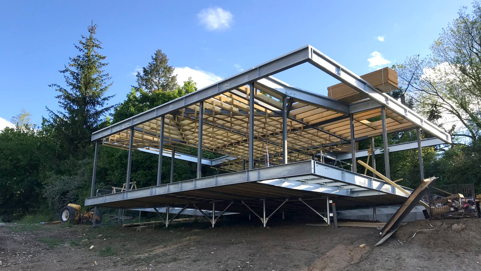 Installation de pieux vissés Techno Pieux pour maison modulaire.