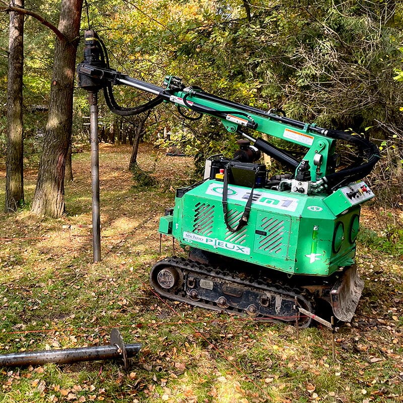 De installatie van de Techno Pieux wordt uitgevoerd door gecertificeerde installateurs, waarbij gebruik wordt gemaakt van apparatuur van gespecialiseerde installaties die zeer efficiënt zijn, zodat uw project op een stevige basis kan worden gebouwd, zonder de nadelen van beton.