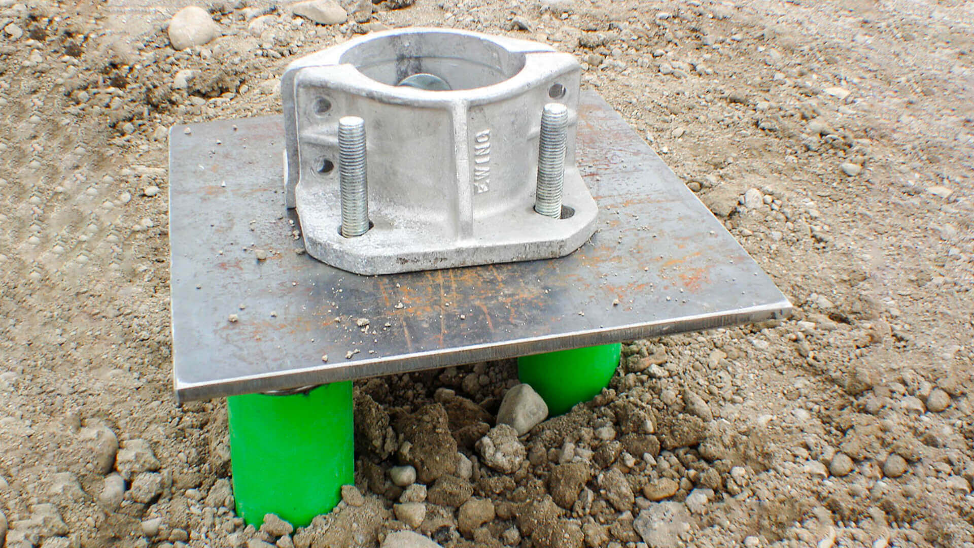 Onze gecertificeerde installateur schroeft de Techno Pieux in de grond tot de vereiste draagkracht is bereikt, stelt deze op de juiste hoogte af, monteert de steunplaat aan de kop van de Techno Pieux, en uw fundering is onmiddellijk operationeel.